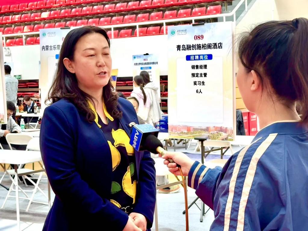 招聘会现场,韩巍校长详细了解了本次参展单位提供的就业岗位情况,并与参展单位负责人亲切交谈。米兰官网党委书记包凤兰也就用人单位的专业需求与毕业生和参展单位进行沟通,并接受奔腾融媒专访。