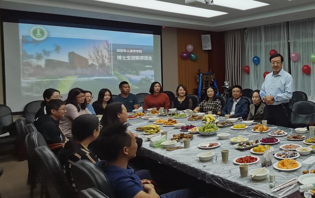 迎新茶话会议程分为两个阶段,首先由主持人,2019级博士生苏玉明介绍了与会领导和老师,之后由二年级和一年级同学分别做了自我介绍,互相认识,并就学业上的经验和困惑进行交流。聆听了同学们的交流后,学院党总支书记包凤兰代表学院领导班子发言。包书记指出,学业是没有捷径的,作为博士研究生要勤读书、苦读书,坐得住冷板凳,经得起寂寞。同时,作为民族学一级学科的博士研究生,一定要牢牢掌握民族学的研究方法,以民族学理论范式去撰写论文,才能在科研中有所收获。
