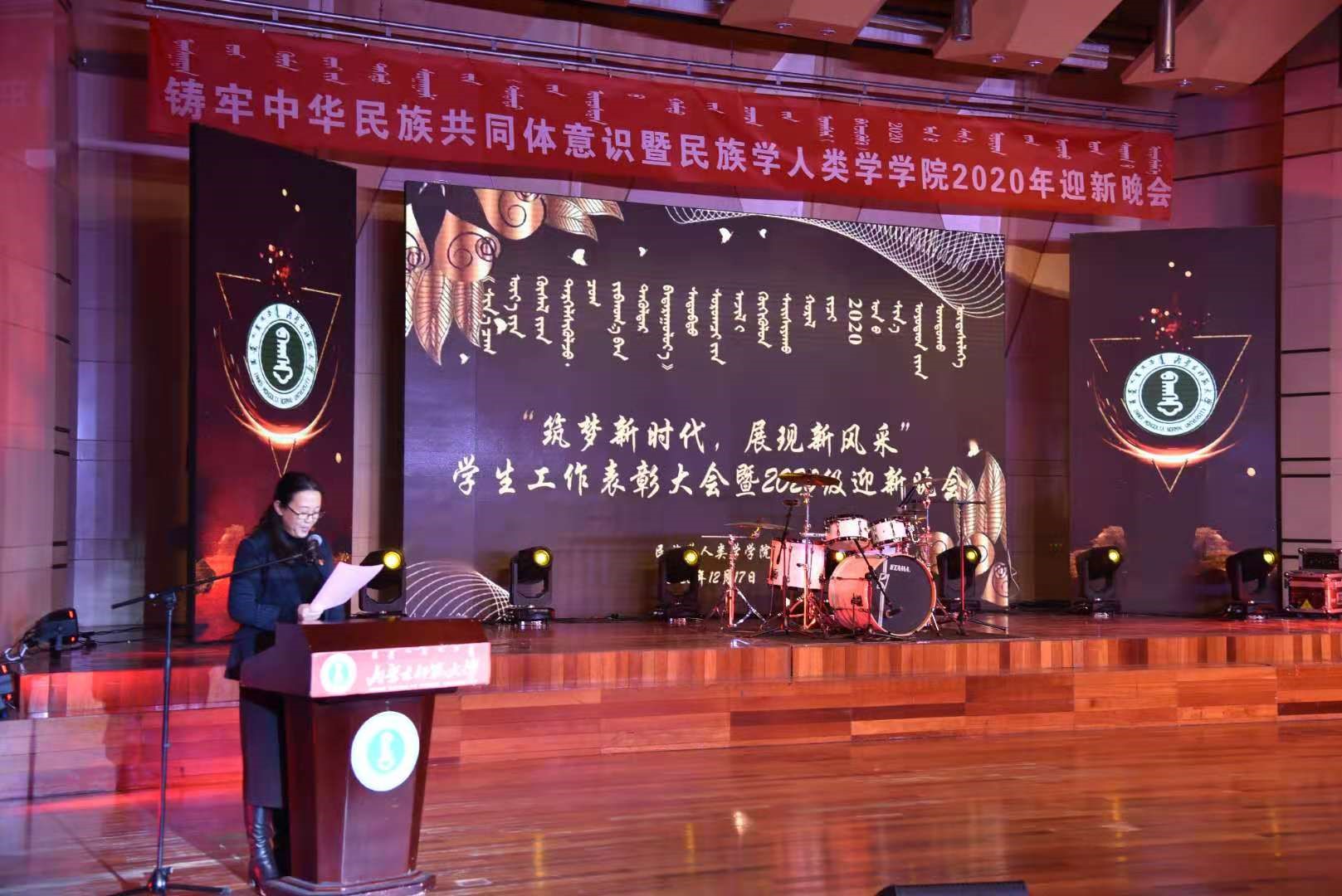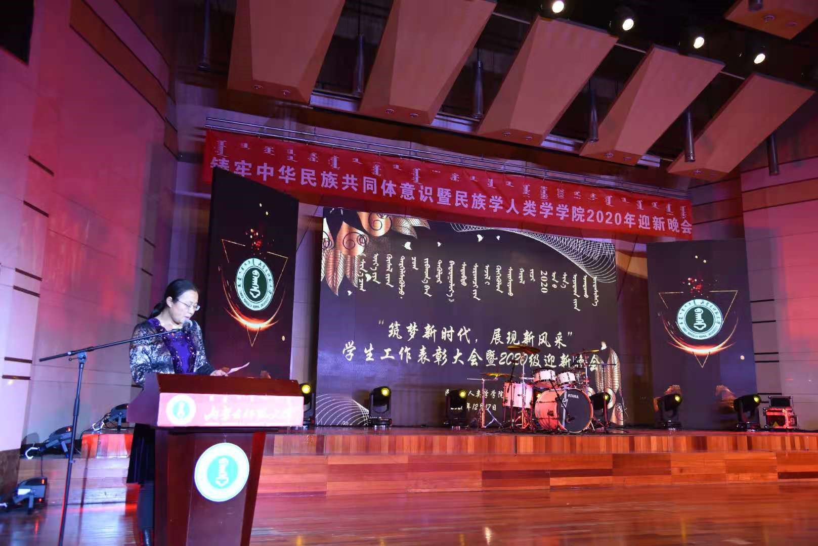 2020年12月17日晚19:30,米兰milan官方网站“筑梦新时代,展现新风采”学生工作表彰大会暨2020级迎新晚会在米兰milan官方网站逸夫楼音乐厅隆重举行。出席晚会的有米兰milan官方网站学工部部长、学生处处长斯钦,校团委副书记包双成,米兰官网党总支书记包凤兰、院长乌日陶克套胡、党总支副书记兼副院长阿荣、副院长满达,团总支书记朱苏道、学工办主任包双成,托雅、张径真、麦拉苏、塔娜、萨出日拉图、那日苏等老师、米兰官网及其他学院学生共600余人。