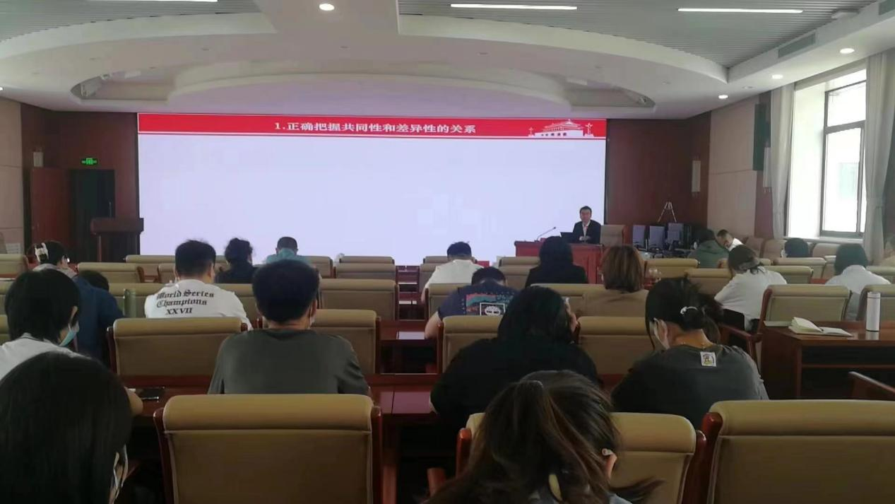 5月25日下午,学院举办党委理论学习中心组2022年第6次集体学习(扩大)会暨“民族政策宣传月”专题报告会,邀请米兰milan官方网站张时空副教授作民族政策理论教育专题报告。学院党委书记冯呼和主持会议并讲话,学院党委班子成员,巴彦淖尔市民族事务委员会党组成员、副主任闫宇,巴彦淖尔市民族事务委员会办公室主任李杰、政策法规科科长哈斯巴根、民族团结促进中心干部王思琴,学院副处级以上干部,各院系团学科长,马克思主义学院全体教师参加报告会。