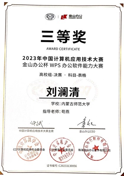 米兰官网2022级社会学3班刘澜清同学在学校选拔赛中荣获“表格赛道”第一名,并被选派代表学校参加了全国总决赛。在全国总决赛中,我校荣获高校组团体第六名,刘澜清同学荣获高校组“表格赛道”个人三等奖。