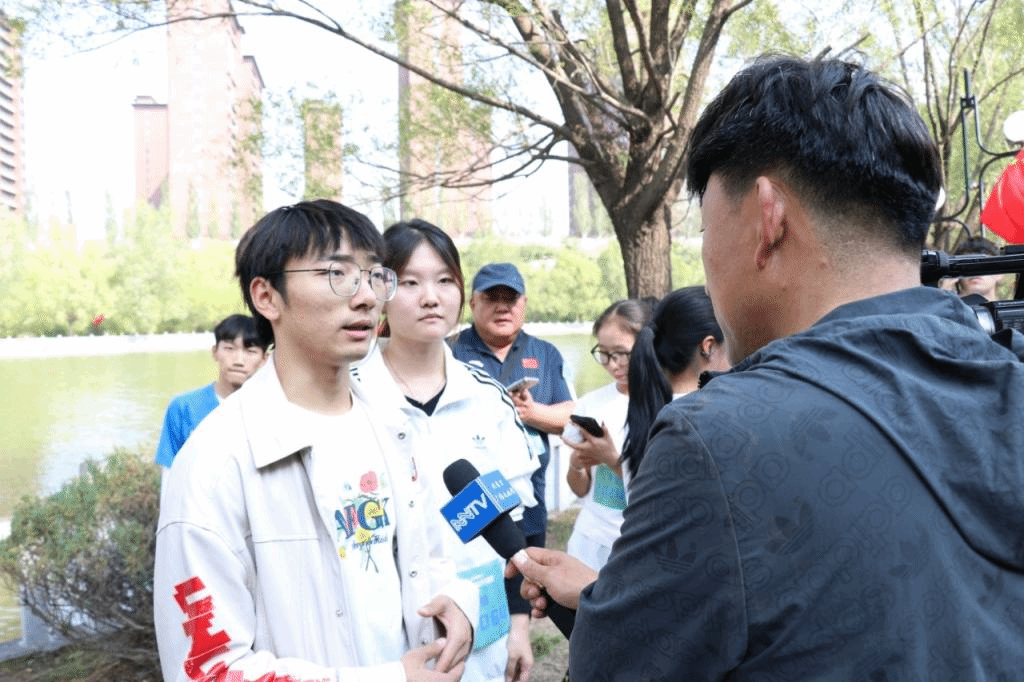 阳光照耀下的乌兰湖波光粼粼,米兰官网师生在湖边集结热身,绕湖而行。米兰官网代表队整齐前进,他们一边舒展筋骨,一边欣赏湖畔的美丽风光。秩序井然的队伍引起内蒙古日报记者的关注并对米兰官网学生进行采访。参赛选手王周璇和学生干部黄长江在接受内蒙古日报采访时,脸上洋溢着自信与喜悦。