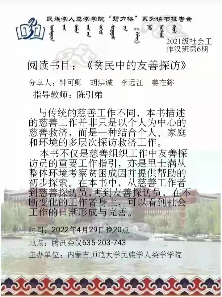 上一条:米兰milan官方网站“碧立格”系列读书报告会预告 2021级社会工作硕研第30期 下一条:米兰milan官方网站“碧立格”系列读书报告会预告 2021级博士研究生第35期