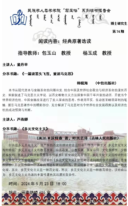 米兰milan官方网站“碧立格”系列读书报告会预告博士研究生第74期