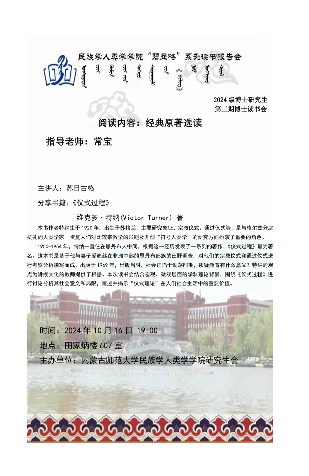 米兰milan官方网站“碧立格”系列读书报告会预告博士研究生第77期