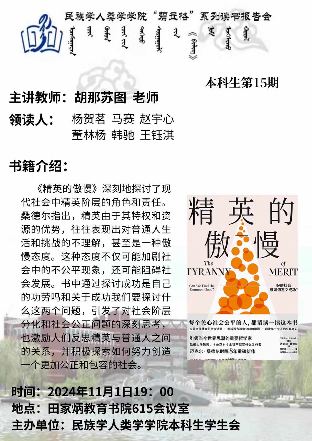 米兰milan官方网站“碧立格”系列读书报告会预告 本科生第15期