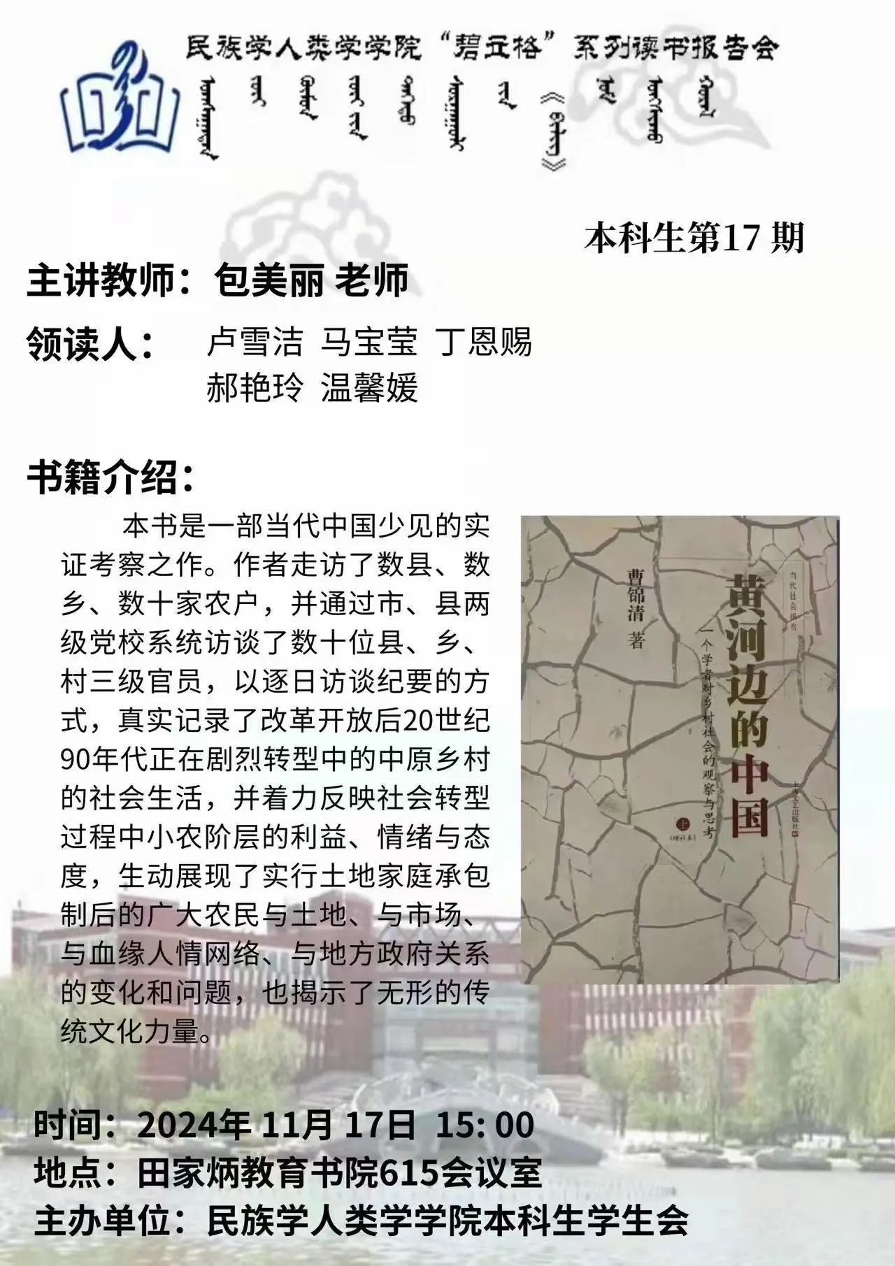 米兰milan官方网站“碧立格”系列读书报告会预告 本科生第17期