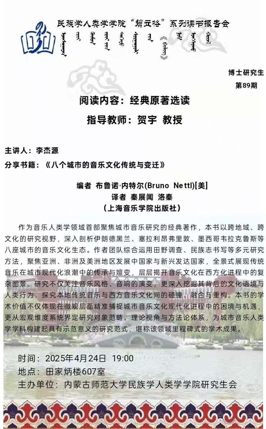 米兰milan官方网站“碧立格”系列读书报告会预告博士研究生第89期
