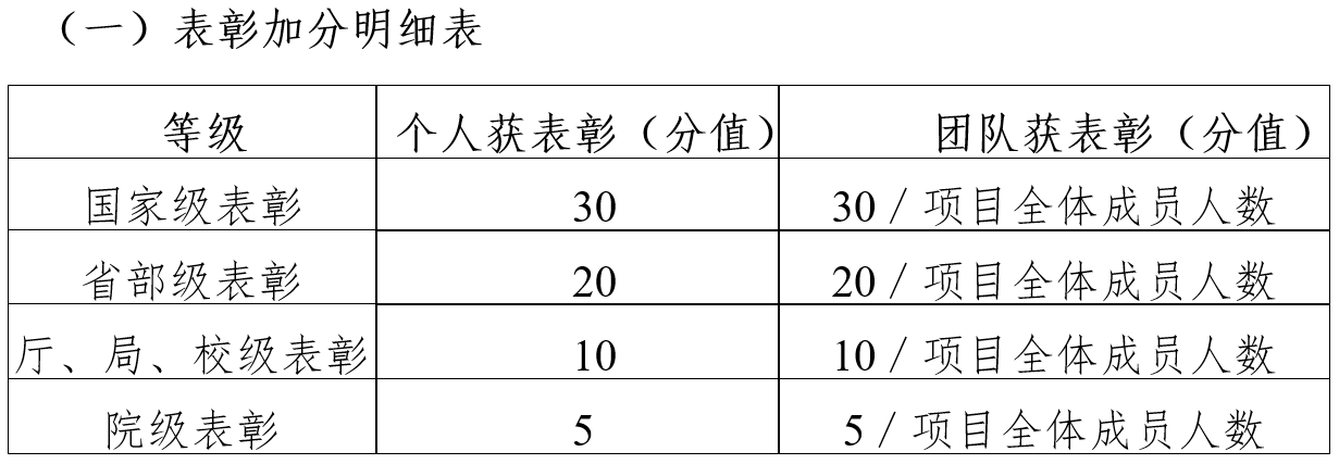 2.获得优秀奖、鼓励奖或参加省级以上比赛未取得名次者,按照下一个等级奖项的三等奖加分。如获得国家级优秀奖的,按照省级三等奖加分,以此类推。