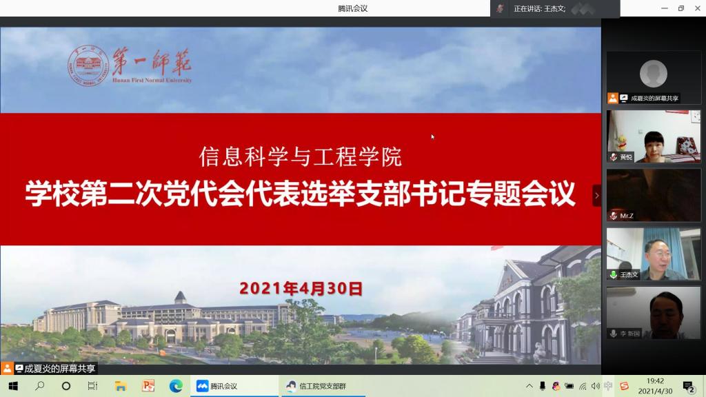 晚上19时30分,学院党总支借助腾讯会议平台召开了支部书记会议,党员学院领导、党总支委员、支部书记参加,会议由党总支副书记成夏炎主持。首先,党总支书记王杰文传达了学校、学院相关会议精神,简要介绍了本次党代会的背景、意义和任务,特别强调了代表选举纪律和要求。接着,成夏炎对bat365官网选举党代表进行了部署。