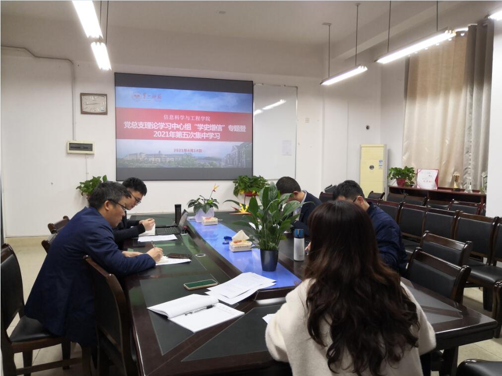 414日下午,学院党总支理论学习中心组在学院会议室开展了“学史增信”专题学习暨2021年第五次集中学习。活动由党总支副书记成夏炎主持。