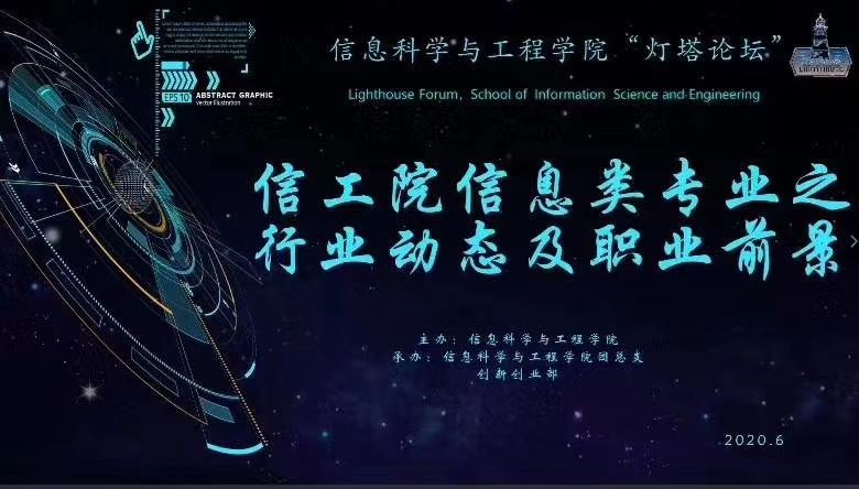 6月14日下午7点至9点30,bat365官网第二期灯塔论坛于腾讯会议APP举行。本次活动主题为“信息类专业行业动态及职业前景”,邀请了bat365官网信息类专业优秀校友与在校师生进行实践反馈和经验分享,致力于提高学生的专业意识,帮助学生明确未来职业发展的趋势与挑战,以促进专业良性发展,树立学生专业学习和职业前景信心。