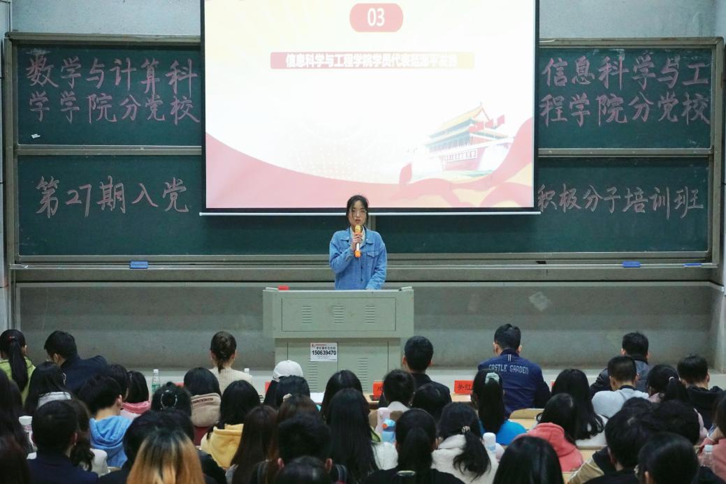 4月15日晚,bat365官网分党校和数学与计算科学学院分党校联合举办的第二十七期入党积极分子培训班开班典礼在润寰南105隆重举行,本期培训班的156名学员参加。两个学院分党校领导、支部书记、学工办主任和辅导员应邀出席。典礼由数学与计算科学学院党总支书记、分党校校长曾玉华主持。