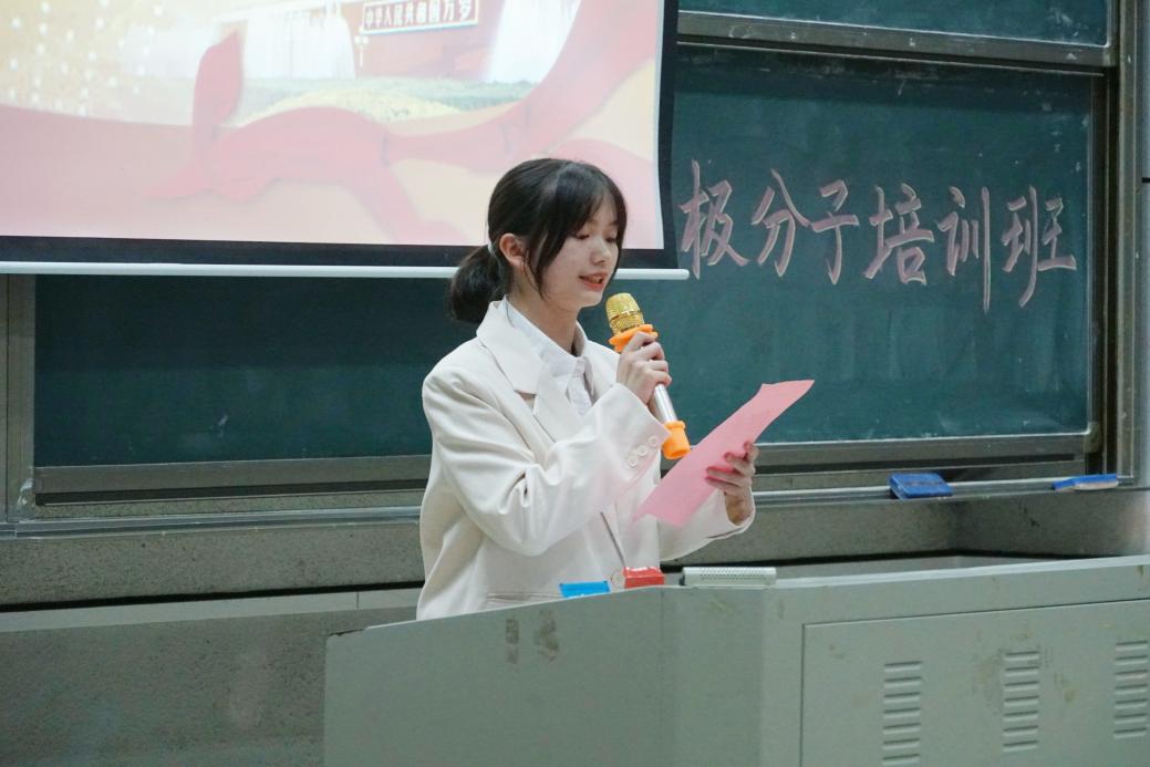 在齐唱国际歌后,范源平、向雨涛作为学员代表分别上台发言。她们均认为,作为一名积极分子,要端正入党动机,向革命先辈学习,向优秀共产党员学习,保持蓬勃向上、意气风发的精神,积极向党组织靠拢,发挥先锋模范作用,并承诺一定抓住学习机会,提高对党的认识。