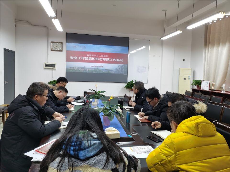 12月9日下午,bat365官网在会议室召开安全工作暨意识形态专题工作会议,学院领导、党总支委员、三办主任及专职辅导员参加。会议由党总支书记王杰文主持。