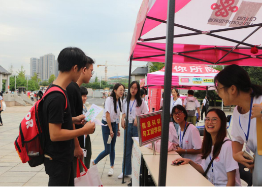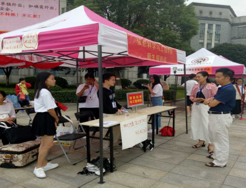 早上6点40分,所有迎新干部迅速到达各自工作岗位,以饱满的热情、良好的精神面貌迎接新同学的到来,致力为新生入学送去一份快捷。早上7点,在中轴广场前方的信息科学与工程学院报道接待处,迎新干部们迎来了第一位报道新生。学院学生干部们主动上前帮助新生搬运行李,带领新生赶赴报道教室,并与学生家长悉心交流,答疑解惑。