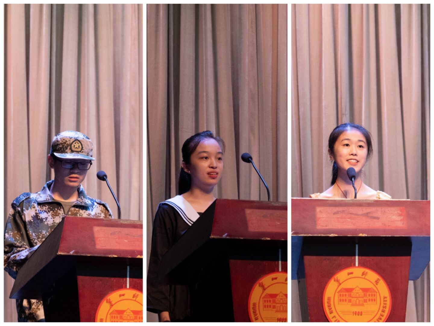 接着,新生代表20级848教技班陈婉婷、20通信1班朱威豪、老生代表19级817教技班徐仪婷相继上台发言。陈婉婷和朱威豪两位同学表达了对大学生活的期许,表明了努力奋进的决心。徐仪婷同学从“学习规划、个人素质、自身意志、生活常态”四个方面鼓励新生敢于挑战、勤勉躬行。