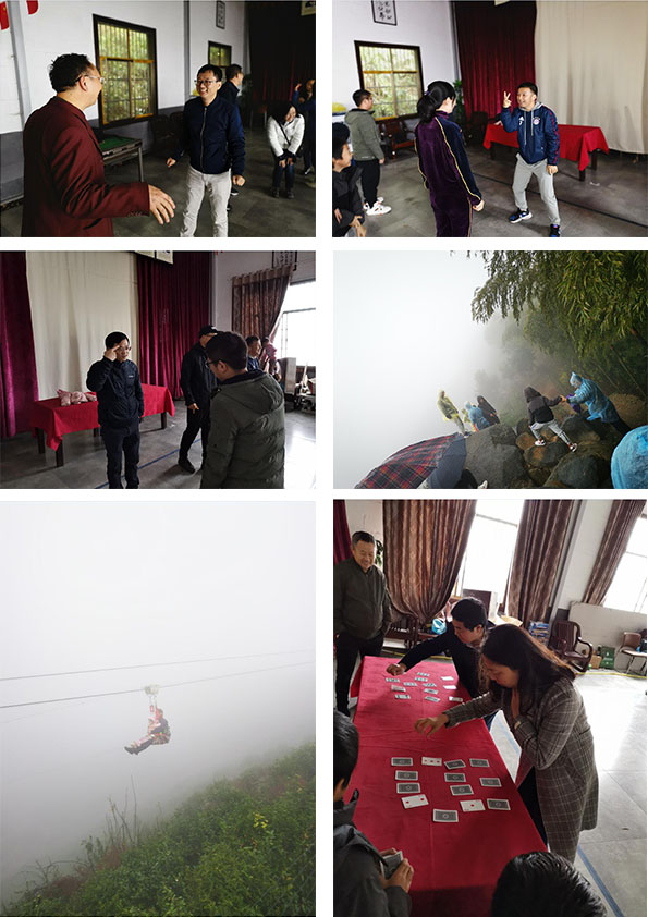 细雨浸润中的黑麋峰,云雾缭绕,忽隐忽现,宛如人间仙境。经过简单的休整,幽默风趣的洪教练带领大家开始轻松而富有挑战的团队拓展等文体活动。“数字传递”,老师们使尽浑身解数,通过肢体语言,传递着教练所给的信息。“达芬奇密码”,体现着集体的力量,考验着大家的智慧,同时也暗含着执行力的重要性……活动过程中,老师们或激动,或惋惜,或喜悦,或懊恼。大家享受着难得的休闲时光,笑声、快乐装满了整个场地,蜿蜒回荡在山间。拓展活动后,老师们迎着细雨,漫步山中,负氧离子环绕周围,与大自然进行亲密接触,好不自在。