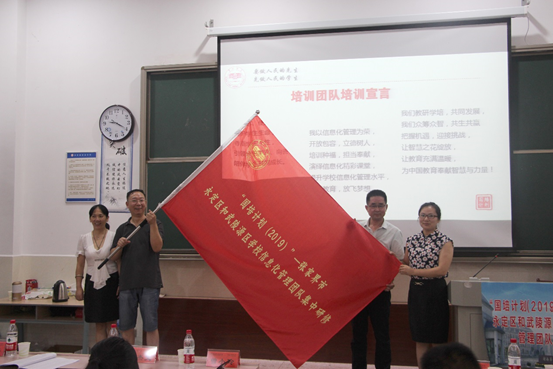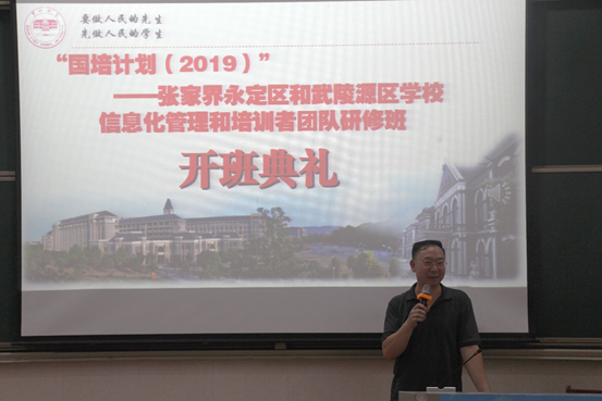2019年8月2日讯(通讯员 周克江):8月2日,由bat365官网承办的“国培计划(2019)”——张家界永定区和武陵源区学校信息化管理团队研修项目(C114),在湖南第一师范院鹤鸣楼南111教室隆重开班。继续教育学院院长曾小玲、本院总支书记王杰文、副院长田祖伟、副院长何向阳,永定区和武陵源区相关领导,培训班管理团队全体成员及60名学员参加了开班仪式。