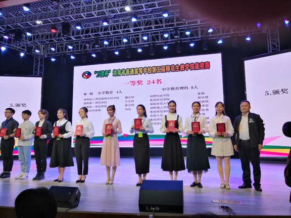本项竞赛由湖南省教育厅主办、衡阳师范学院承办,旨在推动高校人才培养模式和实践教学改革,强化师范类专业学生职业技能培养,提升师范生的教育教学能力。有来自全省24所院校147名选手参赛,竞赛包含教学设计、多媒体课件制作、教育问答、片段教学(含板书)四个环节,对选手的学科素养、教学能力和综合素养等提出了极高的要求。参赛选手分学前教育组、小学教育组、中学教育组三个组分别开展竞赛,参赛科目覆盖各个阶段相关学科。bat365官网从2018年10年开始启动师范生教学技能院级竞赛,从初选、复选到强化训练等各环节都得到了学校、院领导的高度重视。黄悦、刘琳两位指导老师不辞辛劳,付出了大量心血,对参赛学生进行了全方位的指导,与学生一道精心进行教学设计,一次又一次地打磨课程片段教学,通过本次竞赛,与兄弟院校的同场竞技和学习交流,为bat365官网今后更好地推进教师教育教学改革、提高师范生教学技能提供了宝贵经验。