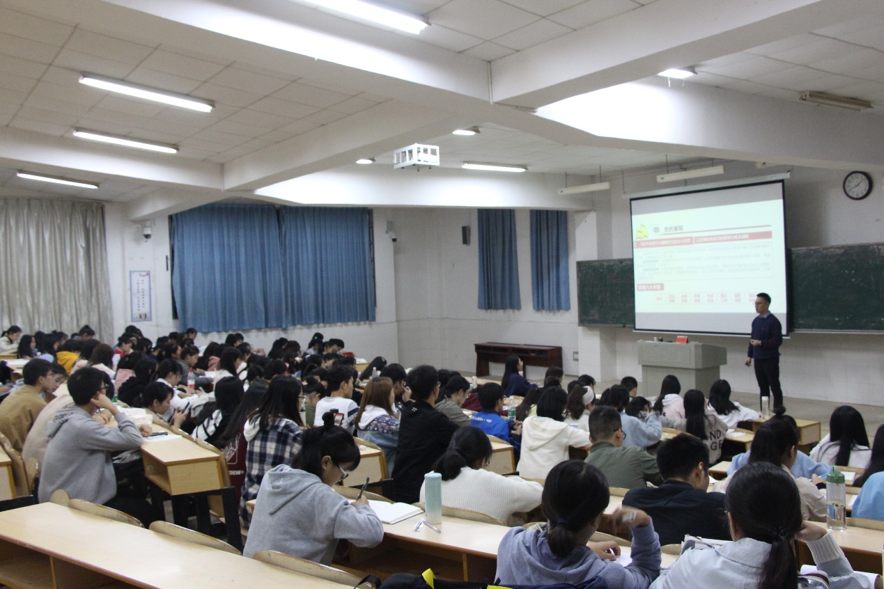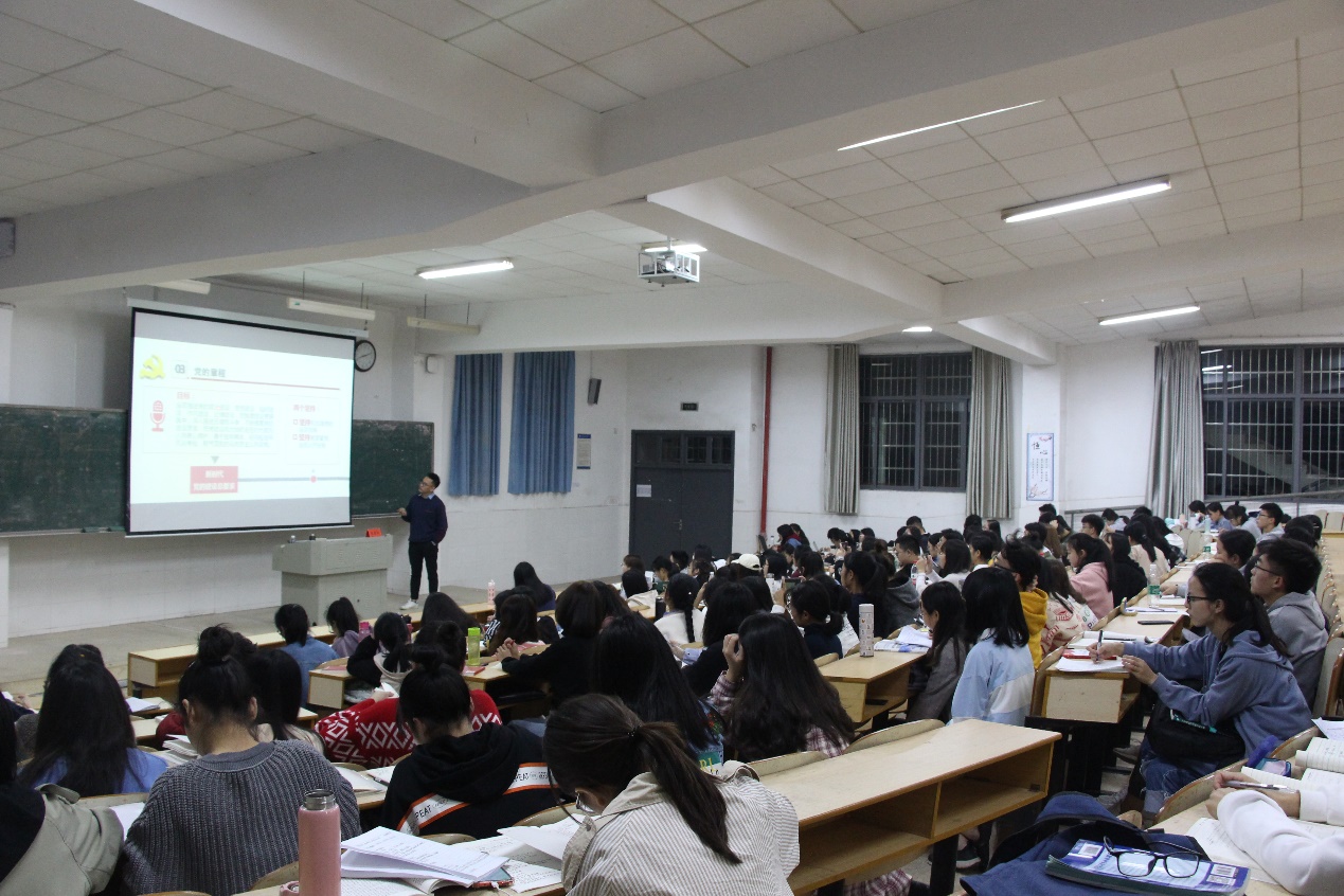 (通讯员 谢晓 肖凤辉)2019年11月5日晚7点 ,信息科学与工程学院党总支副书记成夏炎老师,以“学习入党誓词 ,坚定理想信念—加深对党的认识”为主题,于玉衡南101教室为bat365官网及数学与计算科学学院新一批入党积极分子与党员发展对象讲授了一堂生动的党课。