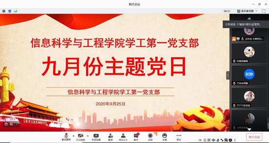 2020年9月25日,bat365官网学工第一党支部、第二党支部分别开展了九月份线上主题党日活动。一同参加主题党日活动的有学院党总支副书记成夏炎、学工办全体辅导员以及两个支部的学生党员。王芊芊、全智分别主持各自所在支部的活动。
