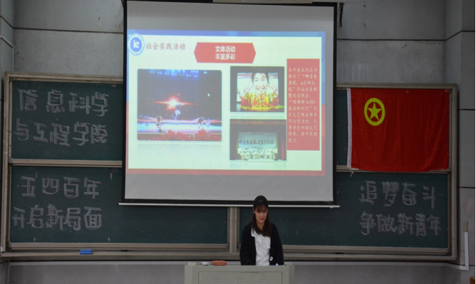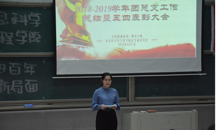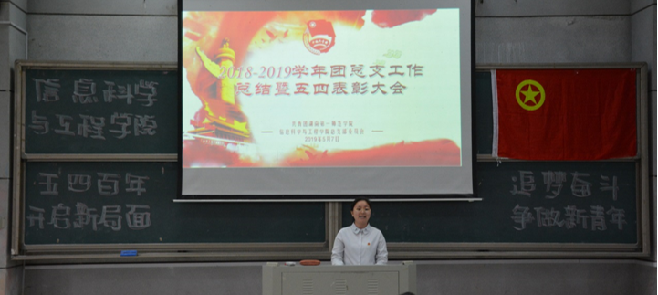 (通讯员 邓力超 雷楠)为引导和激励青年团员们传承并弘扬“五四”精神,牢记历史使命,坚定“四个自信”,发奋学习,勇于创新、乐于奉献,同时对表现突出的先进集体和优秀个人进行表彰,切实推动共青团思想引领、服务育人等各项工作蓬勃发展,信息科学与工程学院于5月7日中午12点30分在润寰南106隆重举行2018-2019学年工作总结暨五四表彰大会。院党总支书记王杰文教授、副院长田祖伟教授、党总支副书记易利老师,学工办主任关红儒老师,团总支书记唐瑞鸿老师,辅导员叶晶老师应邀出席,学院2018-2019届全体学生干部、各班级学生代表共计200余人参加大会。大会由团总支副书记丁姣主持。