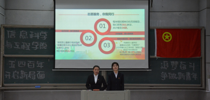 大会在激昂的中国共产主义青年团团歌声中正式拉开帷幕。学院团总支书记唐瑞鸿老师首先作《共青团信息科学与工程学院总支部委员会2018-2019学年工作报告》。唐瑞鸿紧紧围绕学校中心工作,从基层团组织建设、校内外实践活动、学风建设工程、基层团组织建设方面出发做了全面总结,并在报告中指出:一年来,bat365官网广大青年团员在学院党总支和上级团组织的正确领导下,以青年理想信念教育为先导,以提高青年学生的综合素质为主体,全面履行共青团的四项基本职能,服务青年学生成长成才,在加强团的自身建设,拓展团的特色工作,增进团的创新活力等方面取得了可喜的成绩。