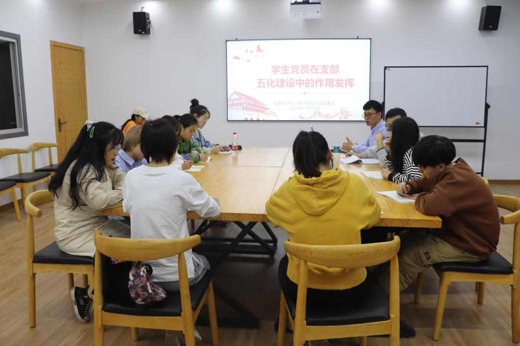 2020年12月1日,bat365官网党总支副书记成夏炎、学工第一党支部书记关红儒在图书馆研修室为学生党员讲授“学生党员在支部五化建设中的作用发挥”和“大学生党员的责任与担当”的主题党课。