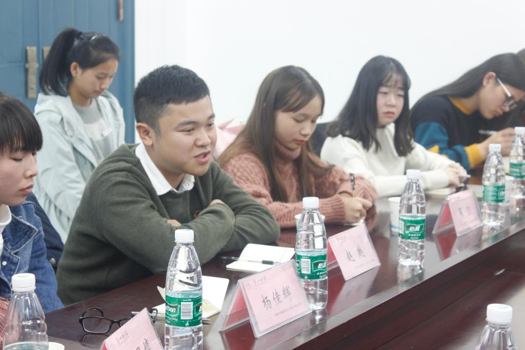 随后,两院就大学生如何践行十九大精神和如何更好地开展党务、团学工作为题展开讨论。并就如何调动学生干部的工作积极性、以及活动经费筹集等双方关心的问题进行了深入而热烈的探讨。