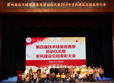 为全面贯彻落实教育部新时代全国高等学校本科教育工作会议精神,结合小学教育师范专业认证工作,进一步加强学院学风建设,以良好的学风推动教风、院风建设,教育引导广大同学勤奋学习、健康成才,信息科学与工程学院于2019年12月27日晚7点在田汉剧院举行第四届技术精英竞赛季启动仪式暨2019年学风建设表彰大会。学院党总支书记王杰文教授、副院长田祖伟教授、党总支副书记成夏炎博士、学工办主任关红儒老师、学工办叶晶老师、李荣敬老师应邀出席大会,学院2017—2019级全体在校学生共计880余人参加大会,会议由成夏炎主持。