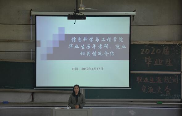 (通讯员 王凯强 陈思迁)为引导学生合理规划未来职业生涯,找准目标、正确定位,2019年4月17日中午12:30分,信息科学与工程学院在润寰南105教室隆重举行2020届毕业生职业生涯规划交流大会。院党总支书记王杰文教授、副院长王建军教授、党总支副书记易利老师,学工办老师们及16-18级各班代表参加本次大会。大会由关红儒老师主持。