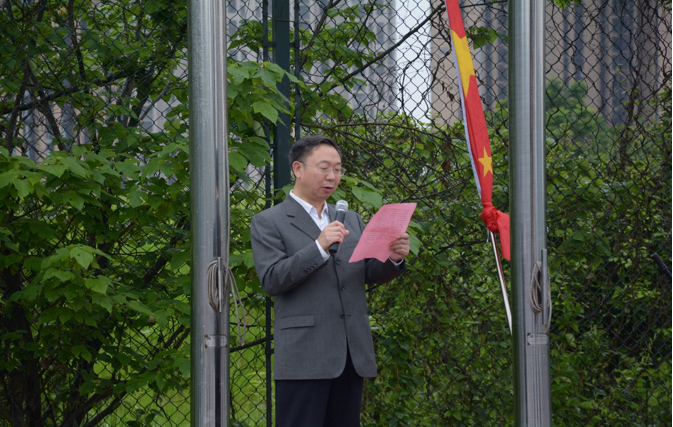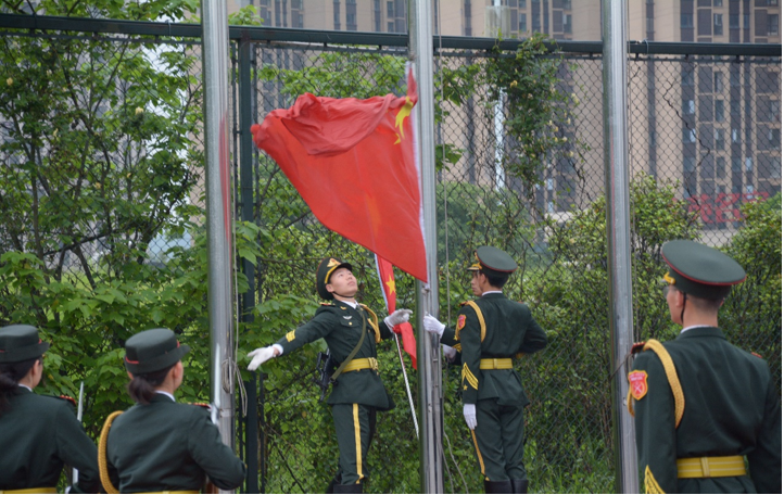 早上7点整,列队完毕,英姿勃发的国旗护卫队迈着铿锵有力的步伐穿过同学们整齐肃穆的队伍走向升旗台,本次升旗仪式正式拉开序幕。鲜艳的五星红旗在熟练的升旗手的操作下,伴随着激昂的《义勇军进行曲》的旋律缓缓升起,到场学生均行注目礼,奏唱国歌。