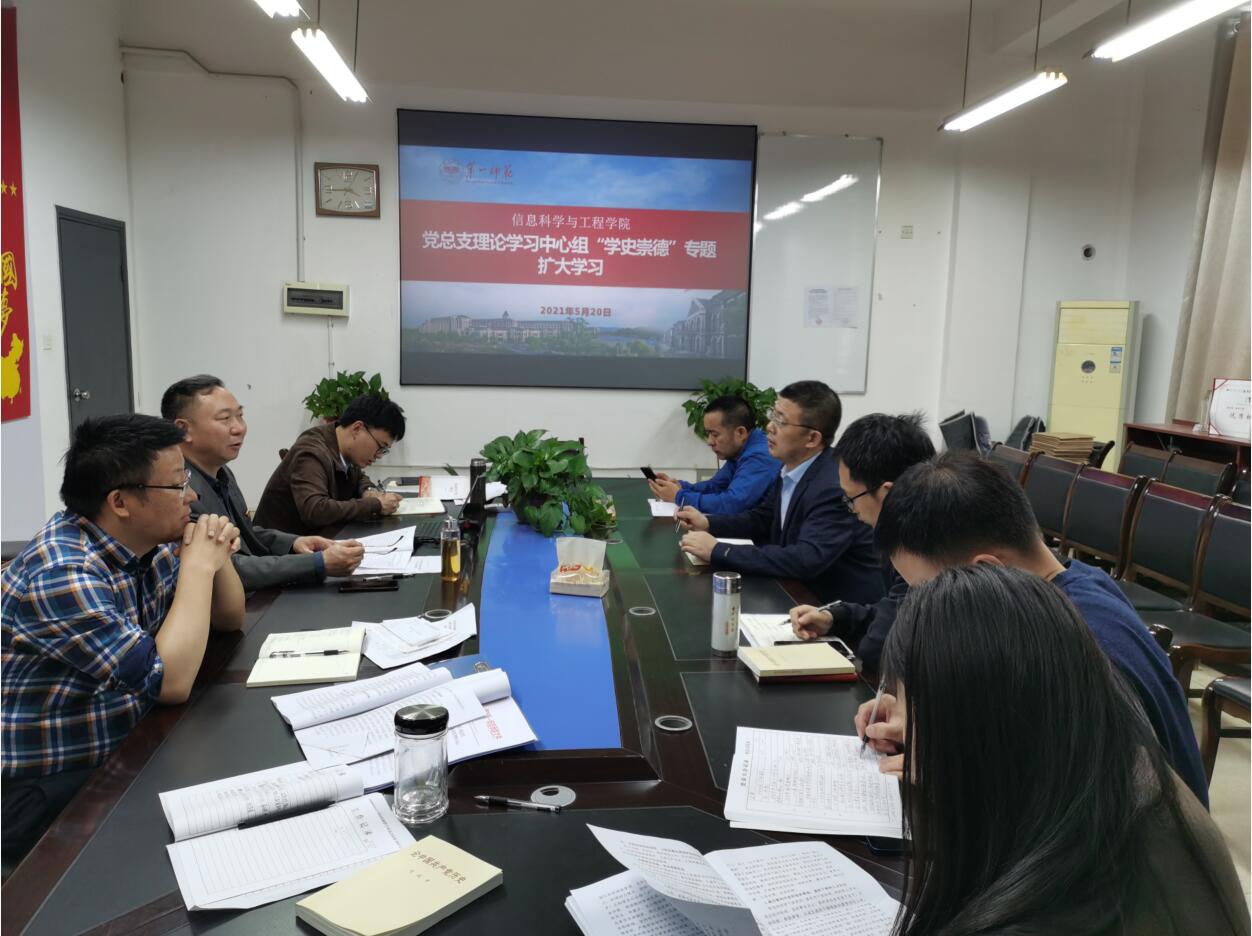 5月20日下午,学院党总支理论学习中心组在玉衡北407开展“学史崇德”专题扩大学习活动。学院领导、党总支委员及bat365官网学校第二次党代会代表参加。活动由党总支书记王杰文主持。