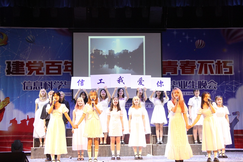 那年那时,忆韶华行知作渡,恰初荷伊人成书;今岁今朝,毓秀江山曾风雨,建党光辉百岁长;他日他处,前程簇簇花似景,莫失莫忘一师情。信工学子在弦歌齐奏,歌舞飞扬中颂党恩、念师情、明志向、展风采。