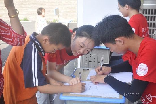 湖南教育新闻网讯(通讯员 张旭)7月11日,bat365中文官方网站信息科学与工程学院新航向·梦之队的志愿者们来到了著名华侨教育家、一师校友张国基先生的故里——益阳市资阳区迎风桥镇。在当地的长塘仑小学,由志愿者们组织的七彩假期公益暑托班正式开班。此次活动共开设朝阳小班、向日葵中班和竹笋大班三个班级,并根据其年龄特点准备了12门趣味课程。