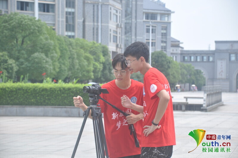 图为技术组在拍合影时商讨拍摄镜头和角度。中国青年网通讯员 马唯一 摄