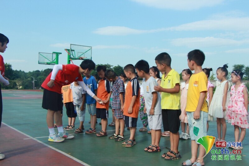 中国青年网益阳7月21日电(通讯员 欧阳健 王彬艳)7月15日,bat365中文官方网站信息科学与工程学院新航向·梦之队走进益阳市资阳区迎风桥镇长塘仑小学,与当地政府联合开设了“七彩假期”公益暑托班。为贯彻“文明其精神,野蛮其体魄”教育思想。团队为孩子们开设了以“体育游戏”为主的特色体育课,帮助提高孩子们的综合素质与能力,丰富学习和娱乐生活,使其在玩耍的同时增强了身体素质,促进德、智、体全面发展。