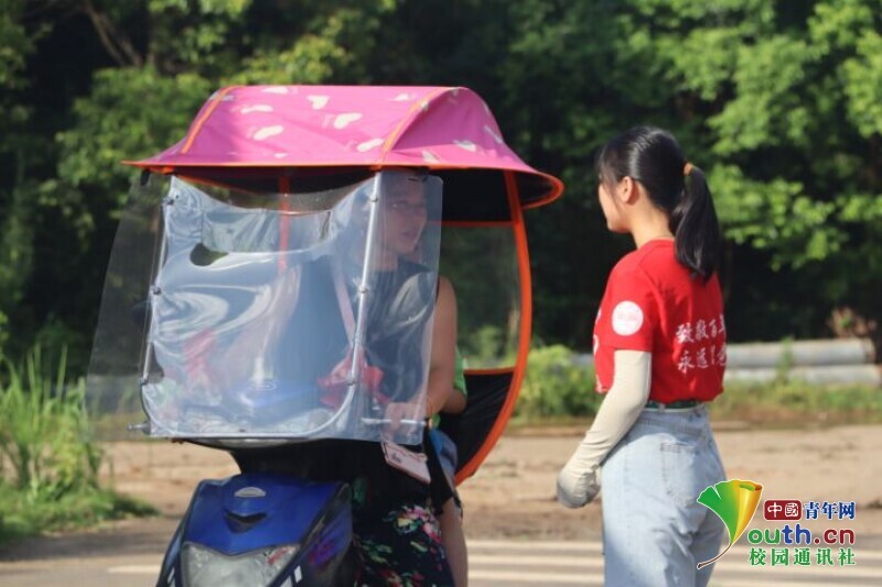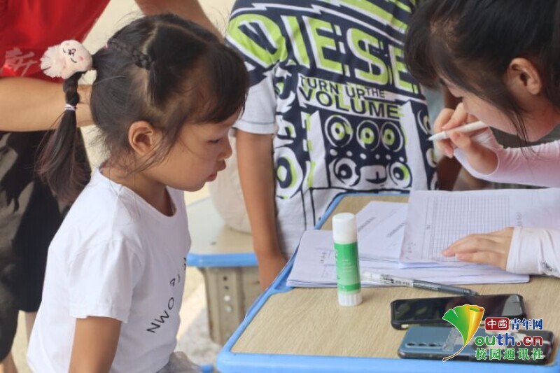图为新航向·梦之队队员在登记学生基本信息,以帮助确保学生安全。中国青年网通讯员 欧阳健 摄