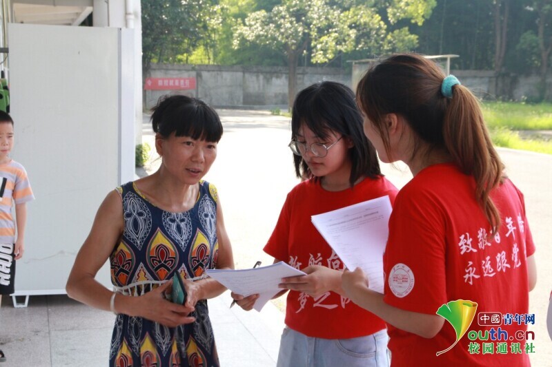 图为新航向·梦之队调研组成员向家长们打听近十年乡村振兴战略实施给本地区农村带来的变化。中国青年网通讯员 马唯一 摄