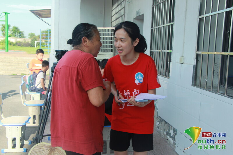 图为队员为家长解答学校时间和课程安排等基本问题。中国青年网通讯员 何星逸 供图