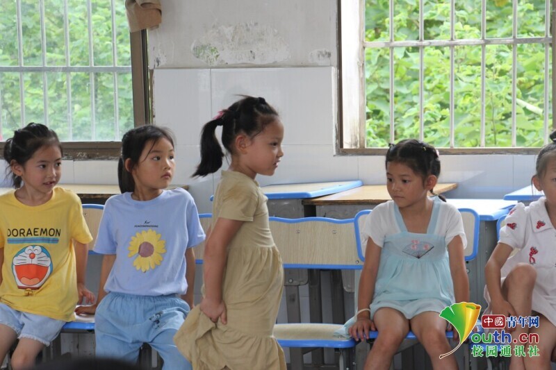 图为害羞的小女孩,站起来说出自己心中的班集体是什么样子的。中国青年网通讯员 邹诗琪 摄