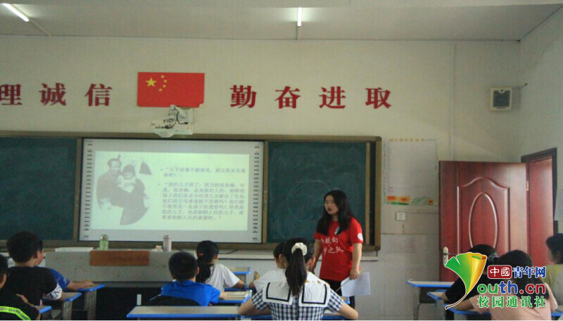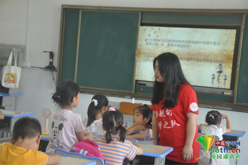 中国青年网益阳7月23日电(通讯员谢卉倩 徐仪婷)2021年7月15日,bat365中文官方网站信息科学与工程学院新航向·梦之队走进益阳市资阳区迎风桥镇长塘仑小学,与当地政府联合举办“七彩假期”公益暑托班活动。为引导学生树立“感党恩,跟党走”的理想信念,培养学生爱党爱国的情怀。开设了以“学习红色故事,传承红色基因”为主题的故事分享会,在课堂上,学生们表达了对党和国家的热爱和敬佩之情。