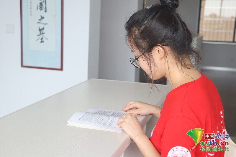 图为志愿者在纪念馆内翻看相关张国基先生的书籍。中国青年网通讯员 段新利 摄