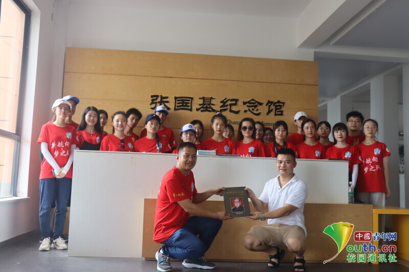 图为参观学习结束后,纪念馆负责人赠予志愿者们张国基先生纪念册并与志愿者们合影留念。中国青年网通讯员 段新利 摄