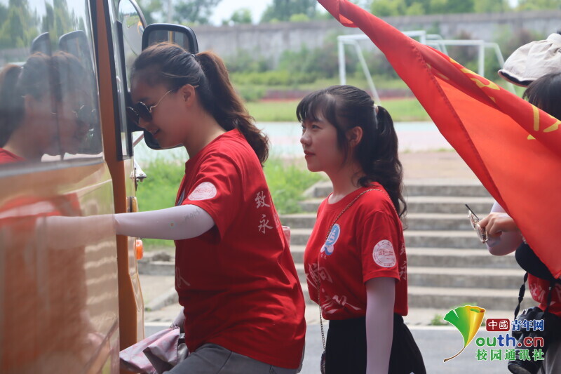 图为志愿者正在有序登上大巴车,准备前往张国基纪念馆。中国青年网通讯员 段新利 摄