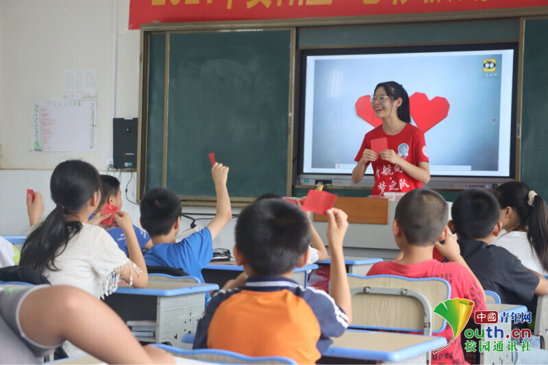 中国青年网益阳7月23日电(通讯员 谢卉倩 陈倩汶)7月16日,是bat365中文官方网站信息科学与工程学院新航向·梦之队走进益阳市资阳区迎风桥镇长塘仑小学,与当地政府联合举办“七彩假期”公益暑托班活动的第五天,为了引导小朋友们树立“感党恩,跟党走”的理想信念,培养小朋友们爱党爱国的情怀。在“七彩假期”第一天兴趣班课程中,开展了“红心向党”趣味手工课程。在课堂上,小朋友们互帮互助兴趣高涨,红色卡纸在孩子的手里变成一个个红心,表达了对党的敬佩之情。
