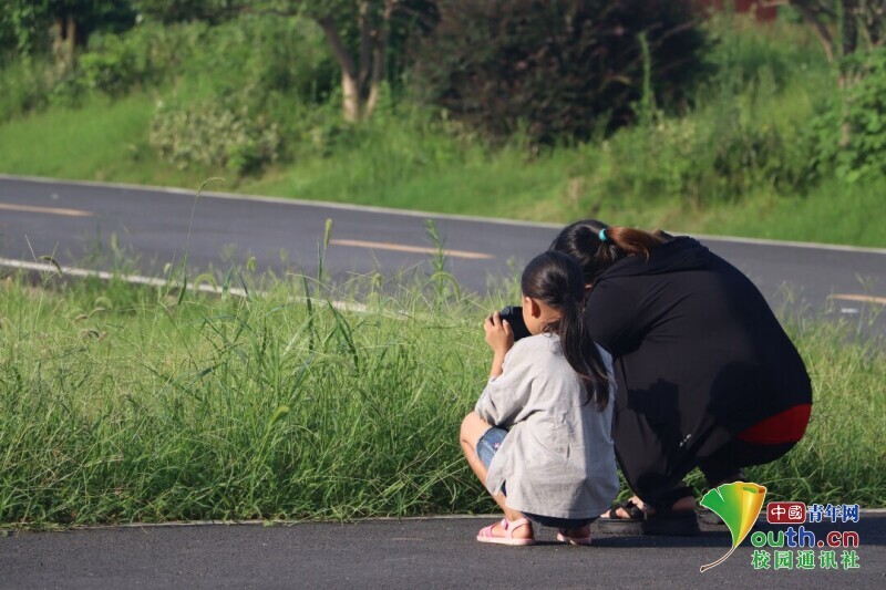图为志愿者在教对摄影感兴趣的孩子一些摄影知识。中国青年网通讯员 段新利 摄
