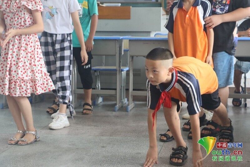 中国青年网益阳7月18日电(通讯员 陈倩汶 欧阳健)7月18日上午,湖南第一师范信息科学与工程学院新航向.梦之队志愿者老师带领长塘仑小学的孩子们开展室内趣味运动会,欢笑声、呐喊声在教室回响。插旗接力、喊数抱团、三人四足、拔河这一个个趣味十足的项目让孩子们感受到了运动会的快乐。一场运动会,让孩子们和志愿者老师的距离亲密无间,感受室内运动会带来的快乐。