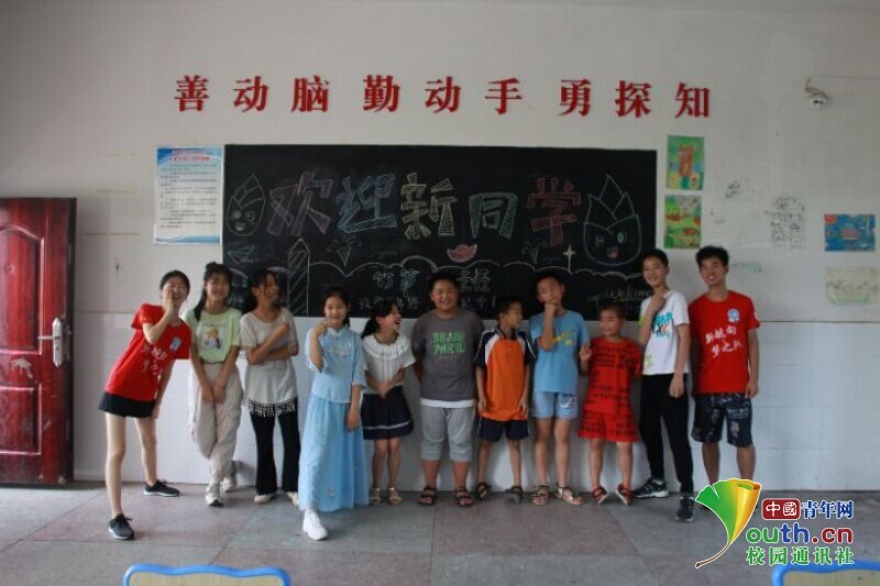 图为竹笋班孩子与新老师齐齐望向镜头绽放笑容。中国青年网通讯员 欧阳健 摄